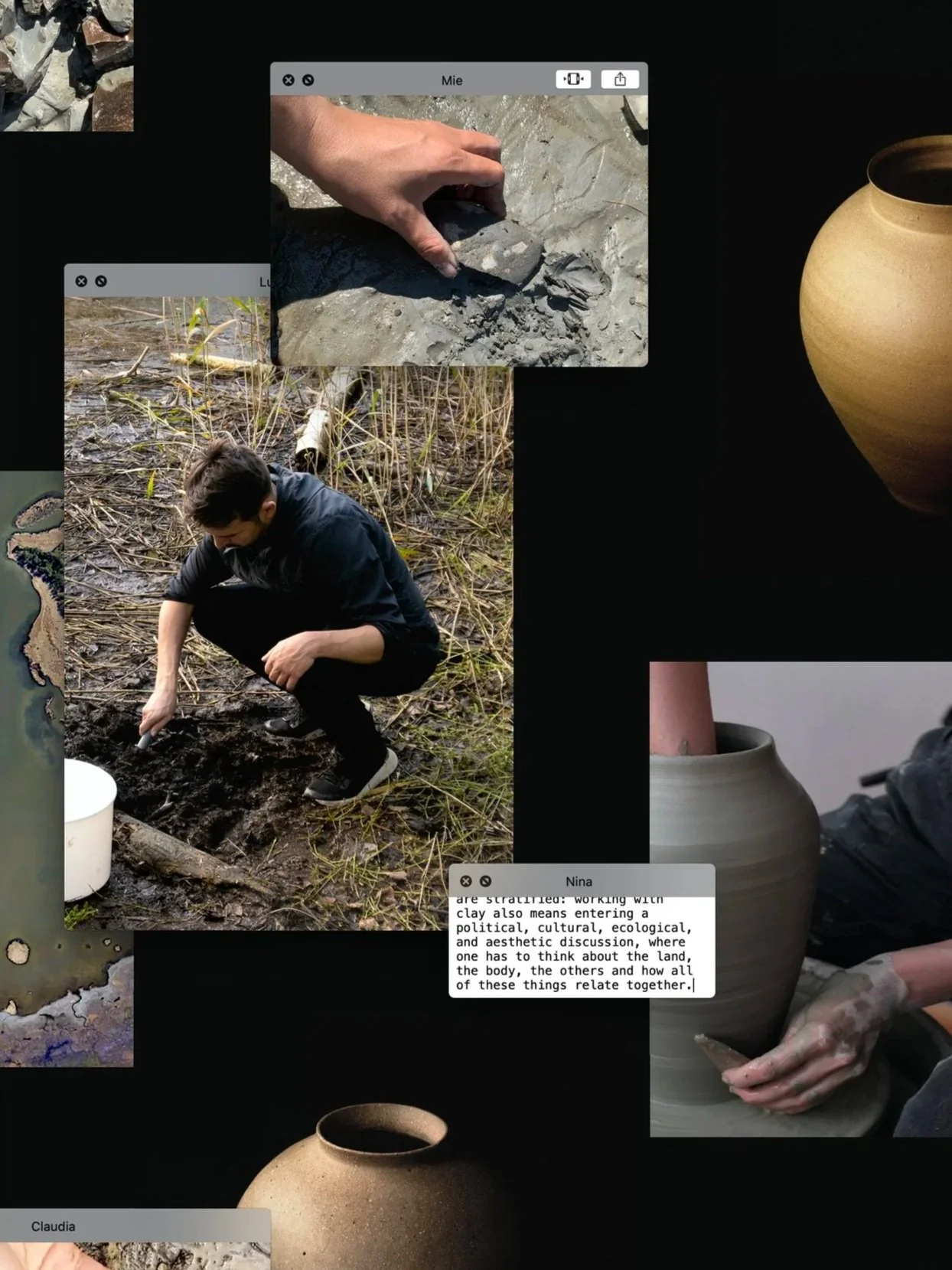 Translocal Pottery emerged as a remote collaboration project in response to the covid-19 pandemic. By exploring pot-making with wild clays foraged from six distinct locations, the project investigates how social, material, and spatiotemporal boundaries are configured and negotiated in practice.